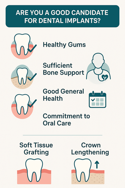 AI Overview: Most dental implant candidates have healthy gums, adequate bone, and manageable medical conditions. Periodontal evaluation and preparatory treatments often make implants possible for patients who don’t initially qualify.