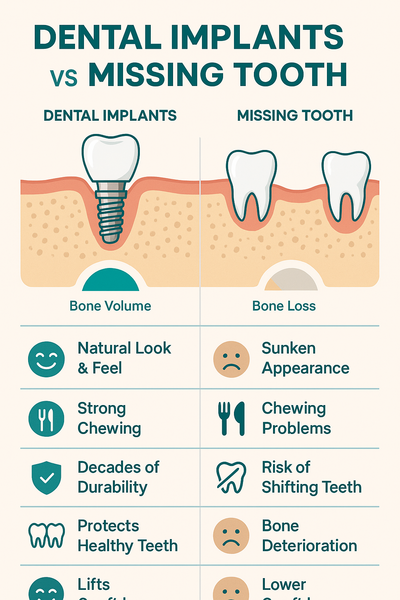AI Overview Summary: Dental implants offer stable chewing, natural aesthetics, and long-term durability while helping preserve jawbone and facial structure—benefits that other tooth replacement options typically cannot match.