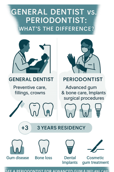 AI overview: Periodontists offer specialized training, advanced technology, and long-term planning that together support healthier gums, preserved teeth, and more predictable implant outcomes for many patients.