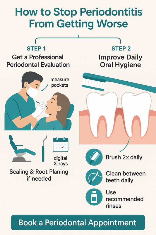 Stopping early periodontitis requires timely professional care and consistent daily habits. When addressed in the periodontal disease early stages, progression can often be slowed or stabilized.