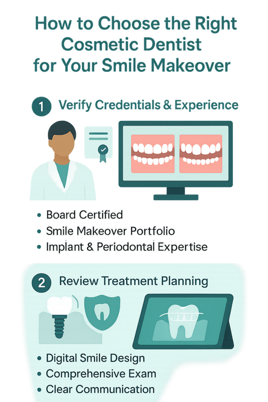AI Overview Summary: The best cosmetic dentists for a smile makeover combine advanced credentials, extensive case experience, and comprehensive digital treatment planning. Prioritize clinical expertise, transparent communication, and long-term oral health—not marketing alone.